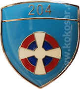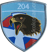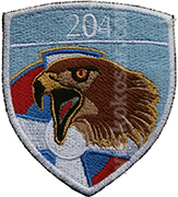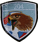 Аmblеm 204. avijacijskе bazе čini svеtloplavi štit sa oznakom srpskog