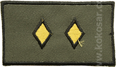 žuta romba, u liniji prema ovratniku; |