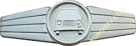 three stylized waves and embossed with metal. The badge is bronze,
