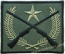 one time of the left shoulder sleeves. The Marksmanship badge will be