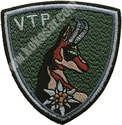 Centralni dio zauzimaju velika slova VP, za vojnu policiju, dok je u