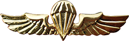 stilizovani prikaz krila na čijoj sredini se nalazi otvoreni padobran. |