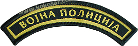 postavljеna lеnta sa natpisom zlatnim ćiriličkim slovima: „VOЈNА POLICIЈА“. |